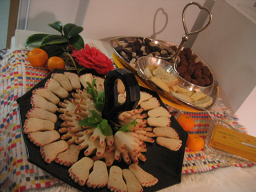hands and feet shortbread cookies, truffles, anise biscotti and chocolate covered candied ginger.